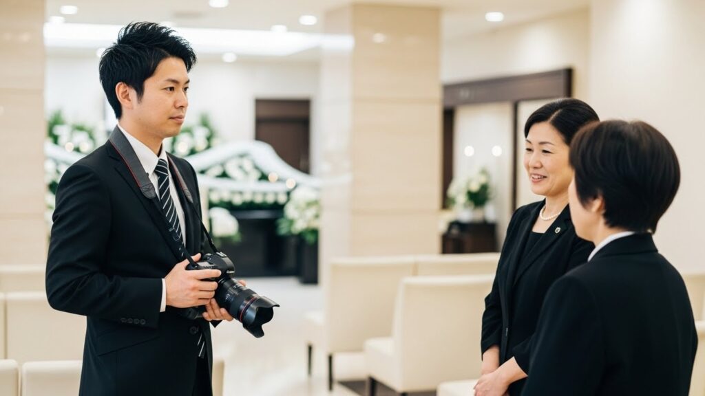 葬儀の記録撮影は、プロのカメラマンに依頼することも可能です。多くの葬儀社では、オプションサービスとして撮影プランを用意しており、事前に相談すれば手配してもらえます。